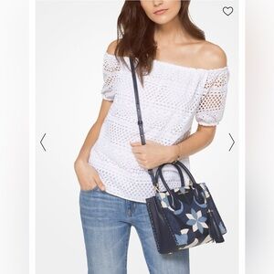 MICHAEL KORS Eyelet Off The Shoulder Blouse, Lined, Size XSmall