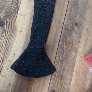 MICHAEL KORS FLOUNCE STRETCH KNIT METALLIC BLACK BELL SLEEVE COCKTAIL