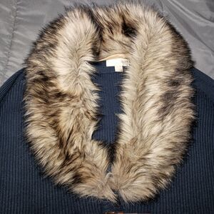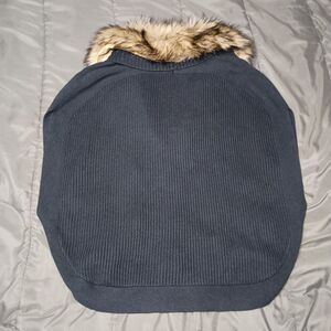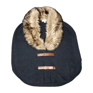 MICHAEL KORS Faux-Fur Buckle Poncho Sweater Vest Cape Navy Blue Size Small S
