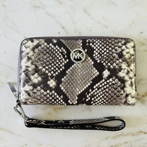MICHAEL KORS Fulton Animal Print Leather Flat MF Phone Case Zip Wallet Wristlet