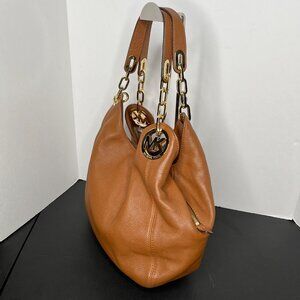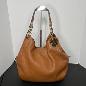 MICHAEL KORS Fulton Brown Pebbled Leather Shoulder Bag Gold Chain Hardware EUC