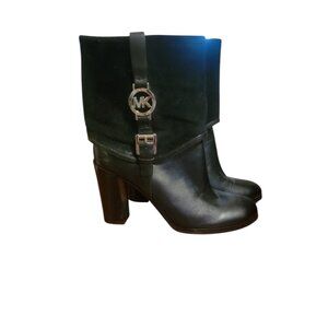 MICHAEL KORS Fulton Harness Bootie Suede Logo Buckle Block Heel
