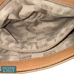 MICHAEL KORS Fulton Pinkish Tan Leather Pebbled Shoulder Bag Gold Chain Strap