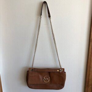 MICHAEL KORS Fulton Small Brown Gold Chain Shoulder Flap Bag