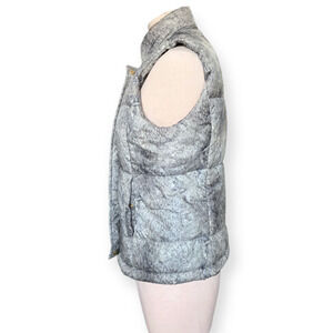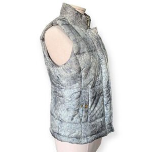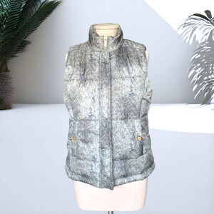 MICHAEL KORS Fur Print Down Puffer Vest Snap Closure Mock Neck Gray Medium
