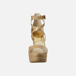 MICHAEL KORS GABRIELLA NUDE PATENT LEATHER PEEP TOE ESPADRILLE WEDGE SIZE 10