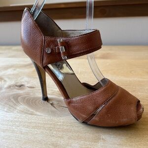 MICHAEL KORS GIBSON MARY JANE HEEL 5M OPEN TOE LEATHER ZIP BACK EDGY