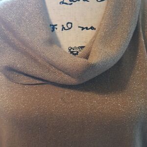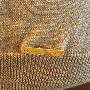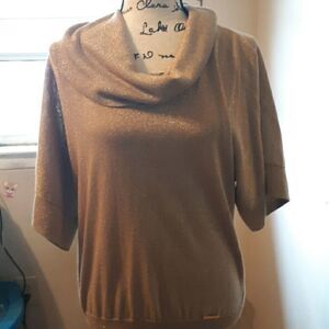 Beautiful, Micheal Kors metallic gold shimmer cowlneck top. No stains. There is a tiny catch in fabric that is not noticeable while wearing. I tried to show in pics. Otherwise in very good preowned condition. Size Medium.Make me an offer!