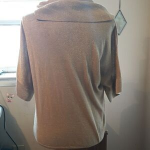 Beautiful, Micheal Kors metallic gold shimmer cowlneck top. No stains. There is a tiny catch in fabric that is not noticeable while wearing. I tried to show in pics. Otherwise in very good preowned condition. Size Medium.Make me an offer!