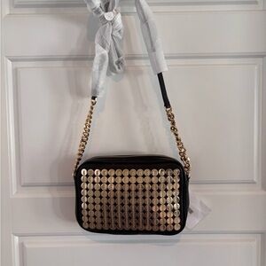 MICHAEL KORS GOLD SEQUINS POUCHS Black Leather Gold Chain Bag NEW W/reticket tag. #Bag-3131