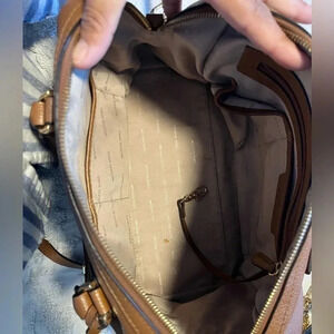 MICHAEL KORS GRAYSON BROWN LEATHER TOTE SATCHEL BOWLING BAG CONVERTIBLE GOLD VGC