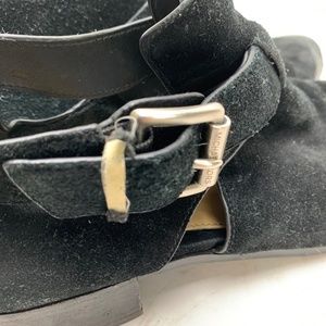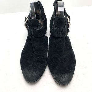 MICHAEL KORS Genuine Leather Black Suede Ankle Booties Shoes Block Heels sz 9.5