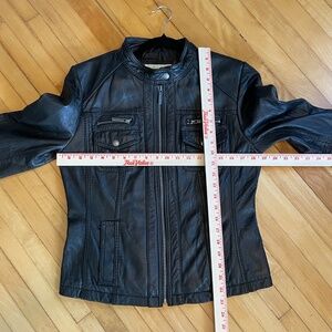 MICHAEL KORS Genuine Leather Moto Jacket Coat Stand Collar Y2K Boho Streetware