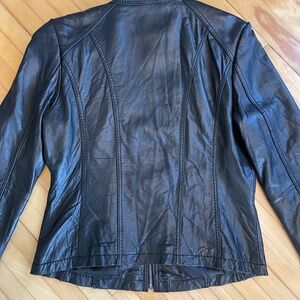 MICHAEL KORS Genuine Leather Moto Jacket Coat Tabbed Collar Y2K Boho Streetware
