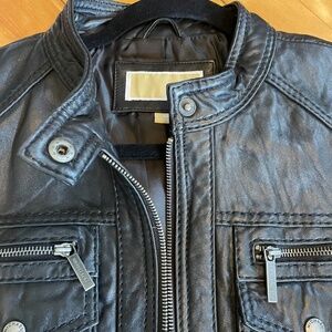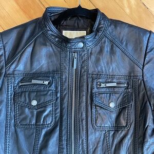 MICHAEL KORS Genuine Leather Moto Jacket Stand Collar Hardware Boho Streetware