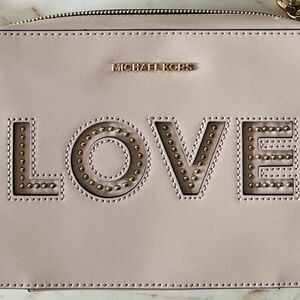 MICHAEL KORS Ginny Soft Pink Leather "Love" Studded Medium Crossbody Camera Bag