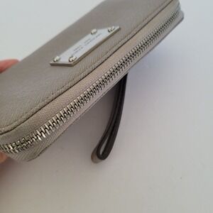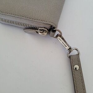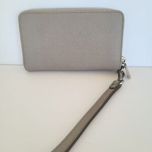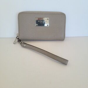 MICHAEL KORS Gray Saffiano Leather Zip Around Wallet Wristlet Medium Logo 6x3