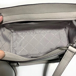 Michael Kors Cement Gray Selma Studded Saffiano Leather Bag. Beautiful bag with lots of life! Selling from personal collection.