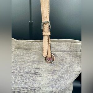 MICHAEL KORS Gray Snakeskin Tote Shoulder Bag.