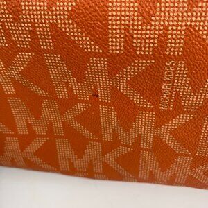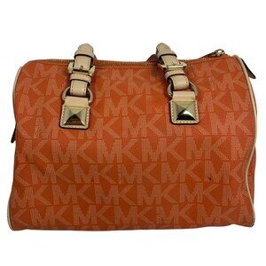 MICHAEL KORS Grayson Medium Satchel Signature Bag Tangerine Orange w/ Bag Charm