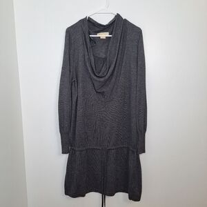 MICHAEL KORS Grey Knit Cowl Neck Drawstring Waist Mini Shirt Dress Size XL