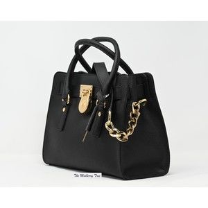 MICHAEL KORS HAMILTON East-West Satchel Black Saffiano Leather NWT.