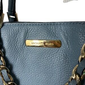 Michael Kors light blue tote this ever-chic carryall.