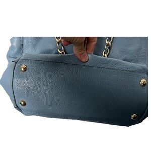 PERFECT FOR SPRING!!!! Beautiful Michael Kors Harper Specchio Saffiano leather tote in light blue with silver trim