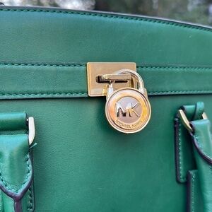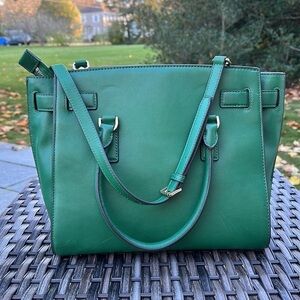 MICHAEL KORS Hamilton Emerald Green Large Leather Tote Bag
