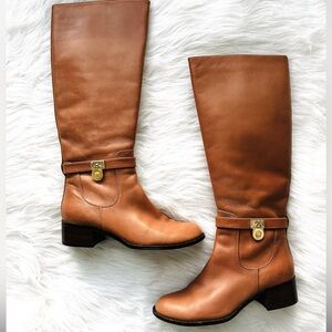 MICHAEL KORS Hamilton Knee High Brown Leather Riding Boots