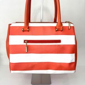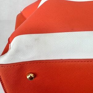 MICHAEL KORS Handbag Crossbody Orange & White Large/Round Gold Toned Logo