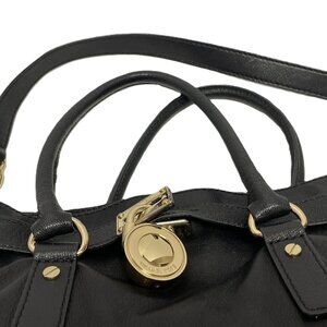 MICHAEL KORS Handbag Soft Black Leather Gold Locket Chain 2-Way *EUC* FABULOUS!!  This bag is made in black soft pebbled leather and gold accents.  The gold chain strap accent and the gold MK locket contrast nicely giving this bag a little edgy vibe.  It is a 2-way carry so it can be carried as a satchel or shoulder bag.  It is clean inside and outside with no flaws seen other than NORMAL WEAR but may have MINOR IMPERFECTIONS.  Therefore, please consider that as part of the "as described" description on any small spot (discoloration, tarnish, scratch, speck, leather scratch, loose string, etc.) you may find.  Measurements are approximate.  It has been gently used and stored with care.  EXCELLENT BAG!!