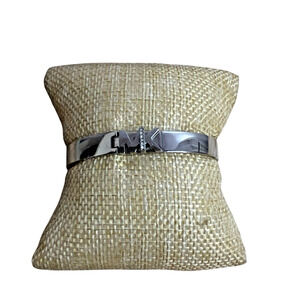 Michael Kors Silver Tone Stainless Steel MK Logo Hinged Bangle Bracelet Size 6.5