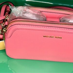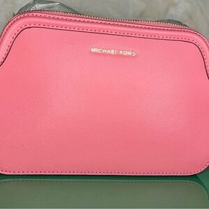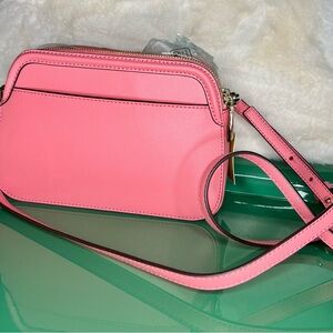 BRAND NEW WITH TAGS. Tea Rose color. A classic style structured crossbody with triple compartment for easy organization.