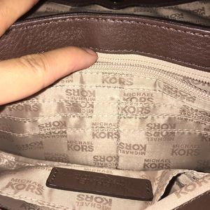 Genuine leather. Micheal Kors logo plaque on flap. Back slip pocket. Chain Strap.