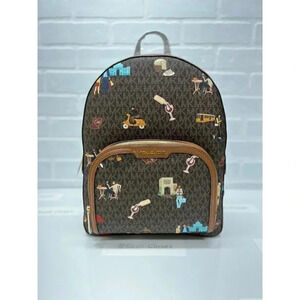 MICHAEL KORS JET SET GIRLS LARGE ZIP JAYCEE BACKPACK - BROWN MULTI