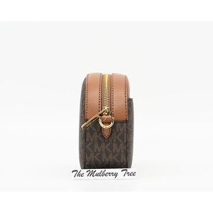 MICHAEL KORS JET SET GLAM Small Front Pocket Oval Crossbody Logo Canvas NWT