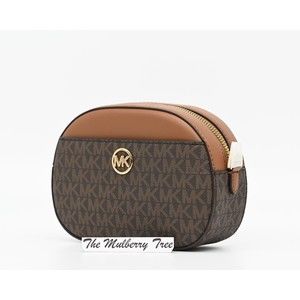 MICHAEL KORS JET SET GLAM Small Front Pocket Oval Crossbody Logo Canvas NWT $398.