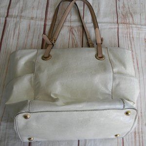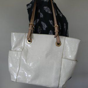 MICHAEL KORS JET SET LOGO WHITE PATENT LEATHER TOTE