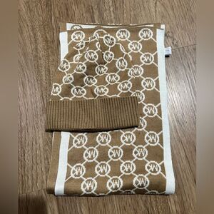 MICHAEL KORS JET SET LOGO PRINT Scarf and Beanie set Women's Tan/ White