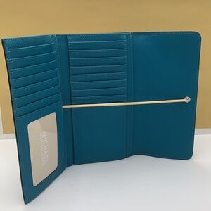 MICHAEL KORS JET SET TRAVEL LARGE TRIFOLD LAGOON COLOR