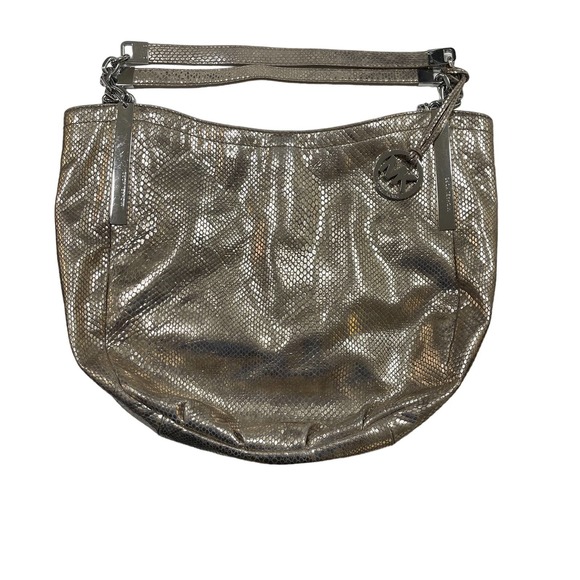 MICHAEL KORS JULIAN PYTHON PRINT LARGE GOOLD HOBO.