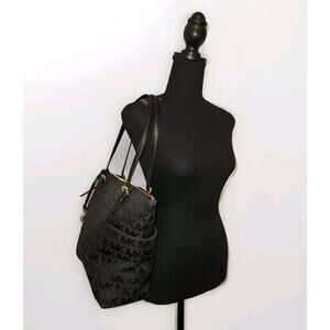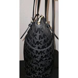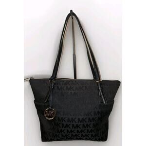 MICHAEL KORS Jet Set Black Signature Logo Canvas Tote Bag 16x11.5x4