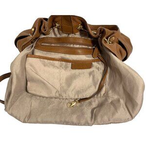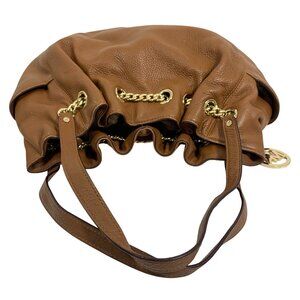 MICHAEL KORS Jet Set Chain Ring Large Tan Brown Leather Shoulder Tote Bag