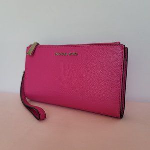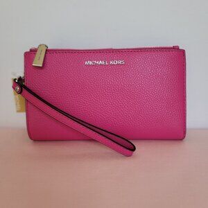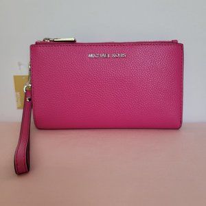 MICHAEL KORS Jet Set Double Zip Pebbled Leather Wristlet- Cerise🎈$114.⭐