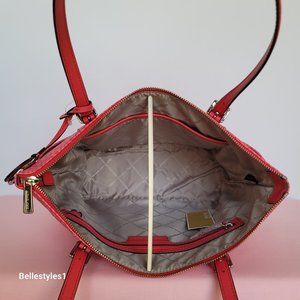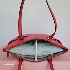 BRAND NEW WITH TAGS. Geranium color. A chic design and functional Tote for daily wear with interior pockets to easy organization. Features side slip pockets for easy access. Crafted of Signature logo PVC/Polyester/PU with top-zip closure to keep your essentials secure.