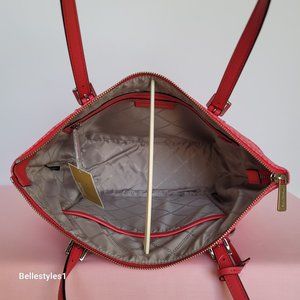 MICHAEL KORS Jet Set East West Top-Zip Signature Logo Tote Bag- Geranium color⭐