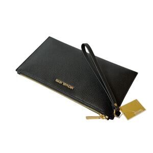 MICHAEL KORS Jet Set Large Leather Clutch Wristlet in Black New w/ Tag MSRP $258