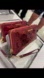 Glossy red wristlet with embossed MK pattern. Gold-tone hardware and wrist strap.