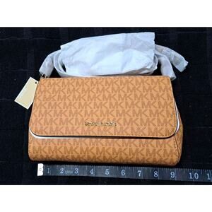 MICHAEL KORS Jet Set Medium MK Logo PVC Convertible Crossbody Pouchette Bag